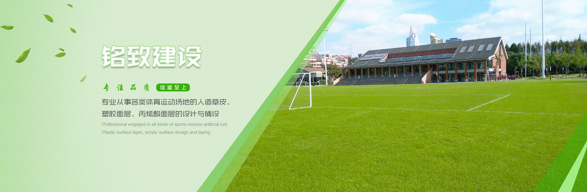 上海銘致建設發展有限公司(Shanghai MingZhi Construction development CO.LTD)是一家專業從事各類體育運動場地的人造草皮、塑膠面層、丙烯酸面層的設計與鋪設,兼營體育器材設備、市政建設等業務能力的合資企業。